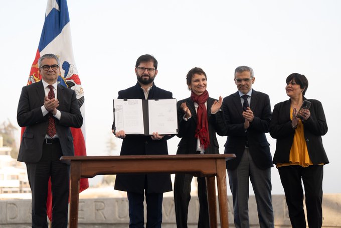 El presidente Gabriel Boric promulgó este martes la Ley Antinarcotráfico, afirmando que las instituciones deben ser protegidas porque no pueden estar afectas a la “guerrilla política”.