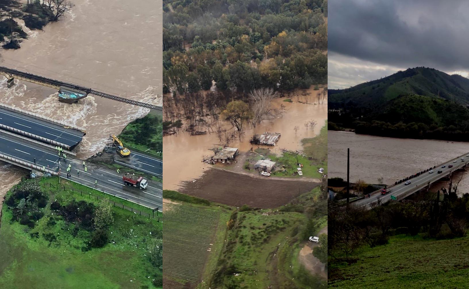 La lluvia en altura sobre los 3 mil metros está provocando un desastre nacional en el centro sur del país, desde la Región de Valparaíso al Maule que ya está bajo Estado de Catástrofe, rutas cortadas, inundaciones por el desborde de ríos, personas desaparecidas, cientos de casas destruidas, y lo más reciente, al cierre de esta nota, el desborde del río Mataquito que prácticamente ha dejado bajo el agua a la pequeña localidad de Lincatén. Situación similar afecta a Coltauco en la Región de O’Higgins que el 80% ha quedado bajo el agua. Al mismo tiempo, a eso de las 19:00 horas el Presidente de la República, Gabriel Boric, quien suspendió su gira a la Antártica, llegó a la capital y se dirigió inmediatamente a Talagante que se vio afectada por el desborde del río Maipo.