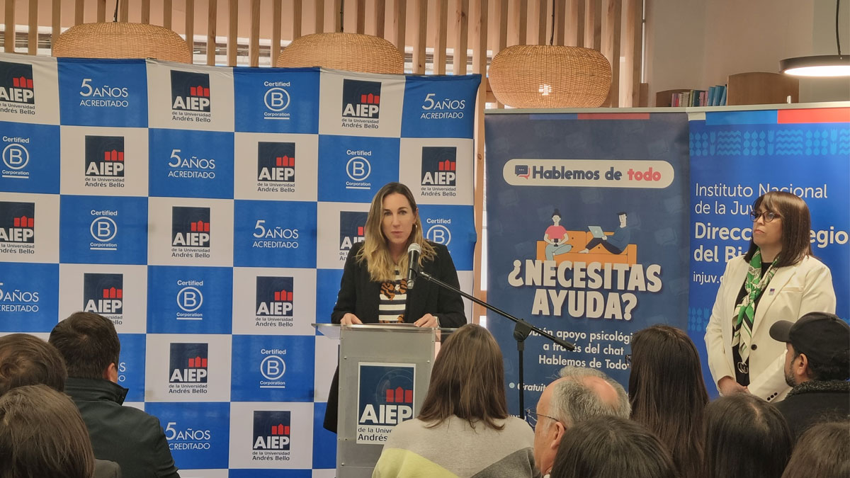 La autoridad agregó que “por ello hoy damos un paso más gracias al programa Hablemos de Todo impulsado por el Instituto Nacional de la Juventud (INJUV) para promover el bienestar de las y los jóvenes para que aborden sus inquietudes con un profesional de la salud. Por eso, desde AIEP nos comprometemos a apoyar y difundir esta iniciativa en todas nuestras sedes desde Calama a Castro como asimismo para la población estudiantil de nuestra sede Online y formatos híbridos que a día a día van en aumento”.