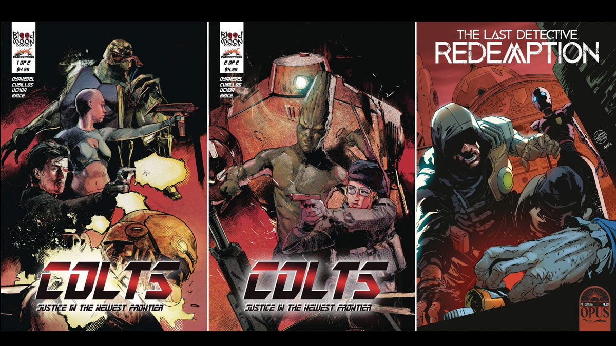 A ‘Sacred Bullets’, de Claudio Alvarez y Danny Jiménez, publicado por Blood Moon Comics en mayo, se sumará en septiembre ‘Colts #1’, de Gonzalo Oyanedel y Andrés Cubillos, publicado por la misma editorial. En octubre, y en un hecho inédito, dos historietas chilenas circularán en el mercado del país del norte: ‘Colts #2’ y ‘El Último Detective’, de Geraldo Borges y Claudio Alvarez; esta última publicada por Opus Comics, compañía conocida en el medio por traer de vuelta las obras del destacado ilustrador Frank Frazetta y su trabajo con músicos como Gene Simmons (Kiss), Joe Satriani y bandas como Evanescense, Helloween y Cradle of Filth.