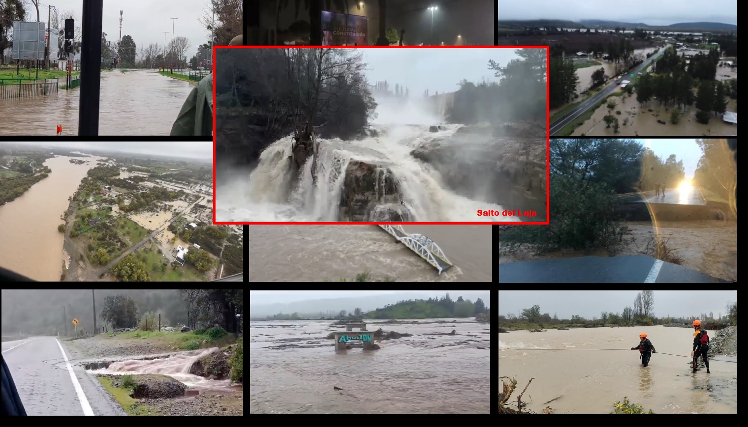 Un poco antes, a las 11:40 de la mañana Senapred alertaba: «Por de desborde del río Chillán, se solicita evacuar sector de la ribera camino a Pinto, comuna de Chillán, Región del Ñuble».