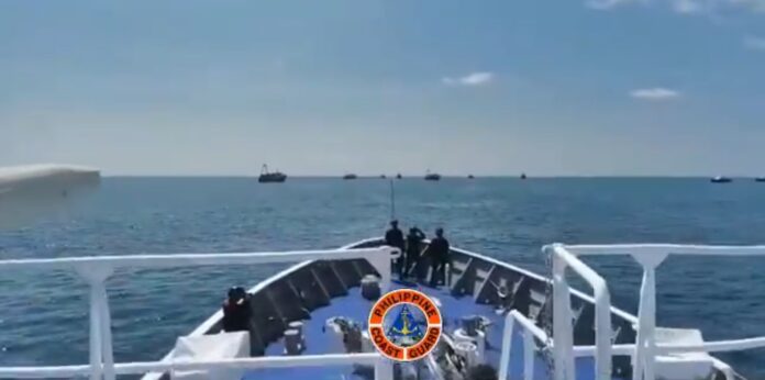 Un barco de la Oficina Filipina de Pesca y Recursos Acuáticos que fondeó cerca de Scarborough el viernes y al menos 54 pesqueros filipinos recibieron órdenes de cuatro barcos guardacostas chinas de abandonar el territorio, con el argumento de que las embarcaciones filipinas incumplían la ley china e internacional. El barco de la oficina filipina de pesca insistió en su respuesta por radio en que estaba en una patrulla rutinaria en aguas filipinas, dijo Tarriela.