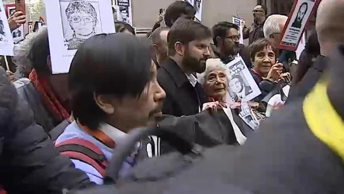 Junto al mandatario también se han plegado a la marcha algunos ministros como la vocera Camila Vallejo y la titular del Trabajo Jeannette Jara.