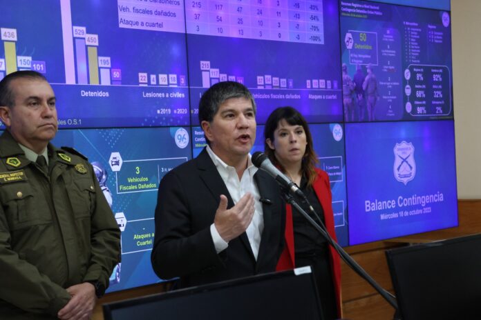 Sin embargo, ambas autoridades destacaron que hubo una disminución de un 33% (101) de incidentes en comparación con la misma jornada en 2022, remarcando que en esta ocasión no hubo ataques a cuarteles de Carabineros ni buses del transporte público quemados (aunque sí dañados).