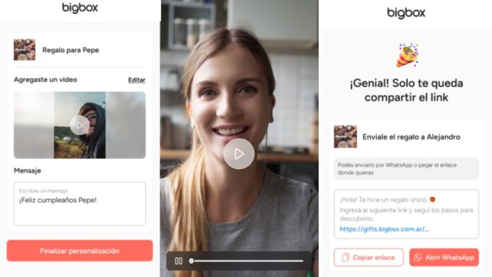 Esta nueva propuesta de la compañía marca un hito en la personalización de regalos, brindando a los usuarios la capacidad de acercarse aún más a sus seres queridos a través de la tecnología.¿Cómo se utiliza? El proceso es sencillo: el comprador va a poder grabar un video con un mensaje o dedicatoria que se reproducirá cuando el destinatario abra su regalo. Los pasos son muy simples: se compra la Bigbox, luego se graba el video, se sube y envía el regalo.