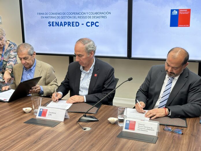 Con el objetivo de formalizar una instancia de cooperación en temáticas asociadas a la preparación y respuesta ante desastres, este jueves se firmó un convenio de colaboración entre la Confederación de la Producción y el Comercio (CPC) y el Servicio Nacional de Prevención y Respuesta ante Desastres (Senapred).