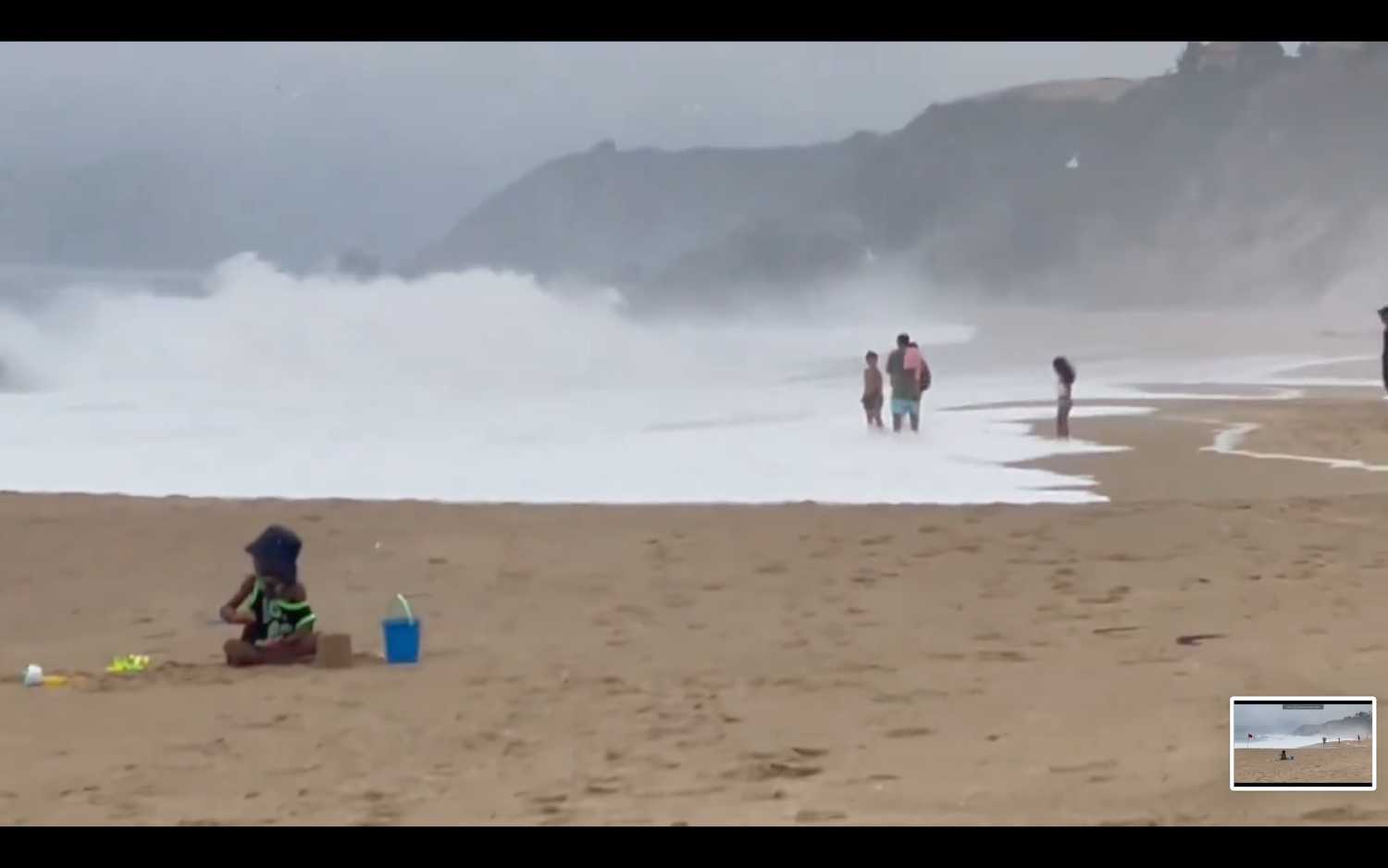#ahora con Marejadas en #Algarrobo y la gente sin ningún resguardo a orilla de playa de una de la playas más peligrosas del