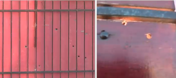 Los peritajes hechos en la escena del suceso muestra alrededor de 40 disparos, lo cual se percibe en el portón del inmueble y en una camioneta estacionada en el sector.