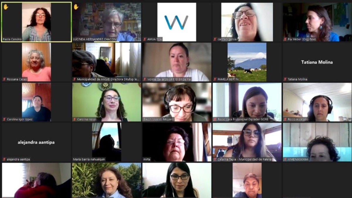 Como Carolina y Ximena, más de 60 mujeres compartieron sus experiencias en el “Conversatorio de Mujeres” desarrollado de forma remota este jueves 4 de enero por el Gobierno Regional de Los Lagos y la consultora Hidrogestión, en el marco del proceso de construcción de la Política Regional para la Sostenibilidad Hídrica. La iniciativa tuvo como propósito identificar temas relevantes, brechas y barreras de acceso a la participación efectiva y reconocimiento del rol de hombres y mujeres en la gobernanza del agua, en la administración de los recursos a nivel territorial, y en el acceso al agua a nivel domiciliario, productivo y personal.