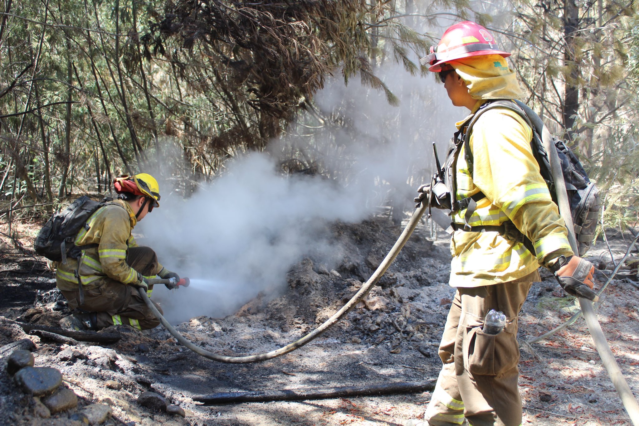 Incendio forestal se mantiene activo con baja intensidad, sin avance y puntos calientes y fumarolas al interior del área quemada. Se trabaja en la consolidación de líneas y liquidación de puntos calientes y fumarolas. |