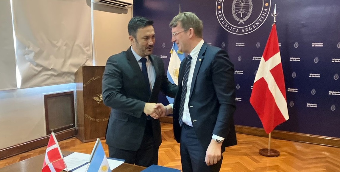 Los ministros de Defensa de la Argentina, Luis Petri, y Dinamarca, Troels Lund Poulsen, firmaron este martes en Buenos Aires la carta de intenciones para la transferencia de 24 aviones de combate F-16A/B Block 15 Fighting Falcon (más un Block 10 para usar en instrucción en tierra).