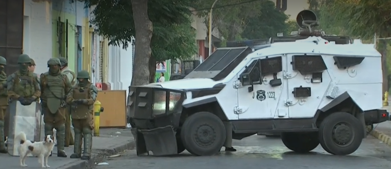 De esta forma, las fuerzas policiales se desplegaron en calle Bulnes con Martínez de Rozas para ingresar a los inmuebles, donde uno de ellos se tuvo que recurrir a un carro lanza gases que fue usado como ariete para poder abrir un portón y entrar a la casona.