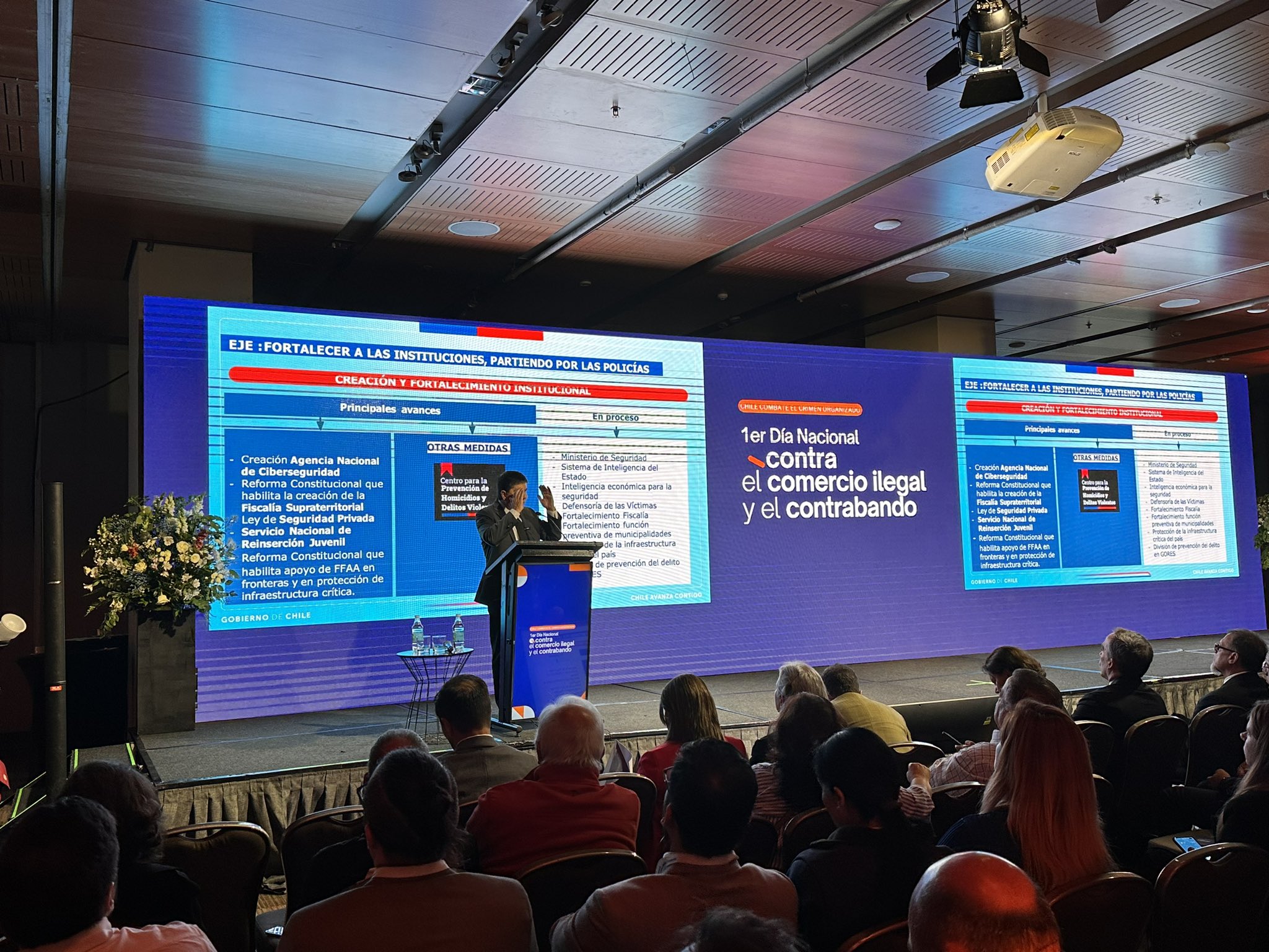 Así, explicó ante una numerosa audiencia, entre ellas diversas autoridades del mundo político y empresarial, que “ustedes colocan aquí el comercio ilegal, eso es un mercado del crimen organizado. Hay otros mercados, como el narcotráfico o como el secuestro o como el lavado de activos. Pero combatir una amenaza de esta naturaleza requiere política de Estado. Requiere necesariamente ponerse de acuerdo. La principal amenaza que nosotros tenemos para derrotarlo es que sucumbamos a este problema histórico de la humanidad, que no seamos capaces de ponernos de acuerdo. Y tal vez ese es nuestro principal desafío».