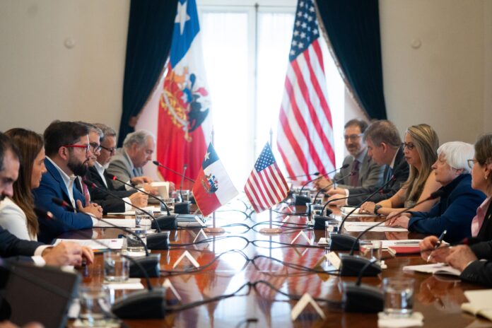 Este viernes inició su visita a Chile la máxima autoridad del Departamento del Tesoro de Estados Unidos, Janet Yellen, quien en una intensa jornada sostuvo encuentros con el Presidente Gabriel Boric, el ministro de Hacienda Mario Marcel, y la presidenta del Banco Central Rosanna Costa.
