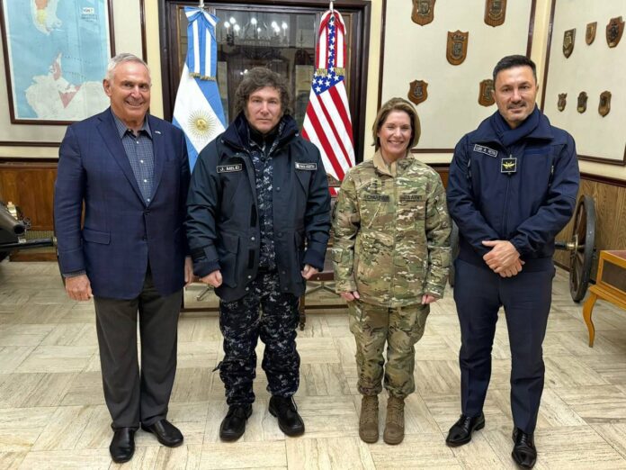 El Presidente de Argentina, Javier Milei autodefinido como ‘libertario’ ayer dio otro paso de acercamiento o mejor dicho una acción suplicante a EEUU para tener apoyo militar para su país, aprovechando al máximo la visita de la general Laura Richardson, jefa del poderoso Comando Sur de los EEUU, que visitaba Ushuaia.