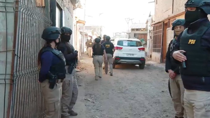 Más de 800 funcionarios de la Policía de Investigaciones (PDI) se encuentran realizando un gigantesco operativo en la toma Nuevo Amanecer de la comuna de Cerrillos y en la denominada “Pequeña Caracas” en Estación Central, en contra del crimen organizado y en busca de drogas, prostitución, robo de autos, entre otros delitos.