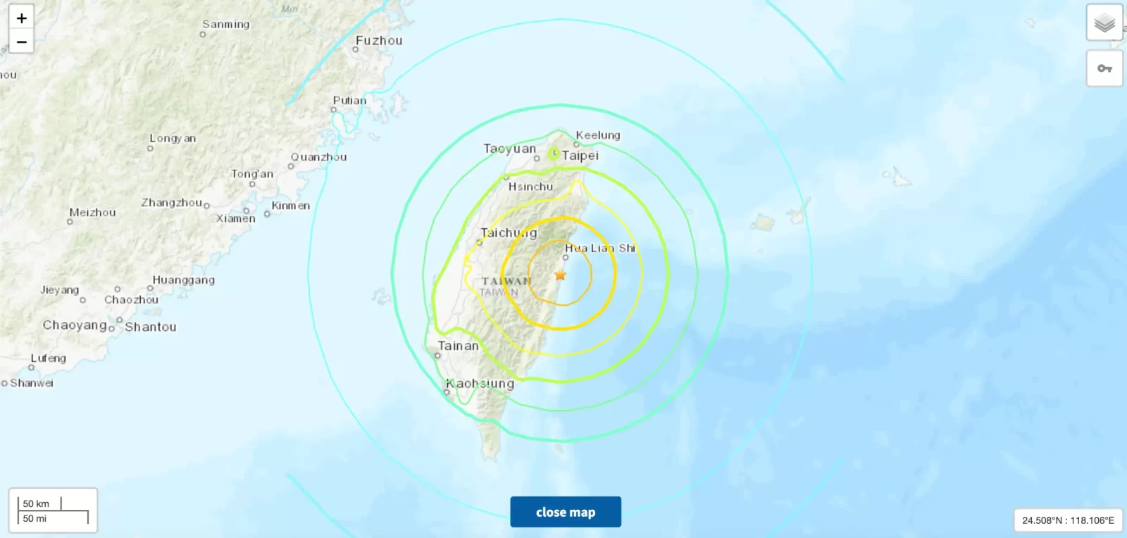 USGS de EEUU informa que un terremoto magnitud 7,4 – 18 km al SSW de la ciudad de Hualien, Taiwán y se ha hecho sentir en la vecina China, Japón, Filipinas.