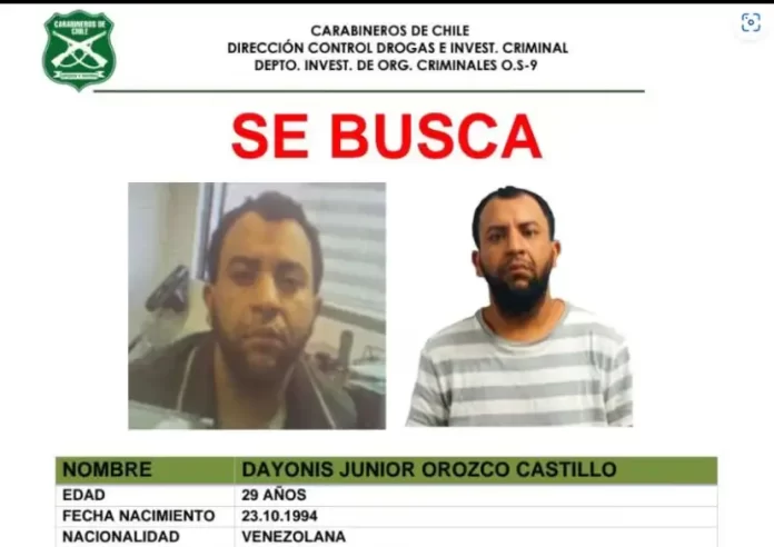 Con respecto al asesinato del mayor Sánchez, este domingo se saben mas detalles del alevoso crimen: Josué Ramírez, Wuilberth Olivares y Yolvi González (Los tres venezolanos) quedaron en prisión preventiva ‘por delito de homicidio de funcionario policial en el desempeño de sus labores’ y uno de ellos confesó que ingresó ilegalmente al pais y que cuando ocurrieron los hechos estaba delinquiendo ya. Además Carabineros publica un aviso de búsqueda de otro prófugo del asesinato del 10 de abril, y se trata del también venezolano Dayonis Junior Orozco Castillo, de 29 años. Tiene una estatura aproximada de 1.74 metros. Es de tez morena, cabello corto color negro y contextura gruesa y es calificado como de “alta peligrosidad delictual”, según el reporte policial.