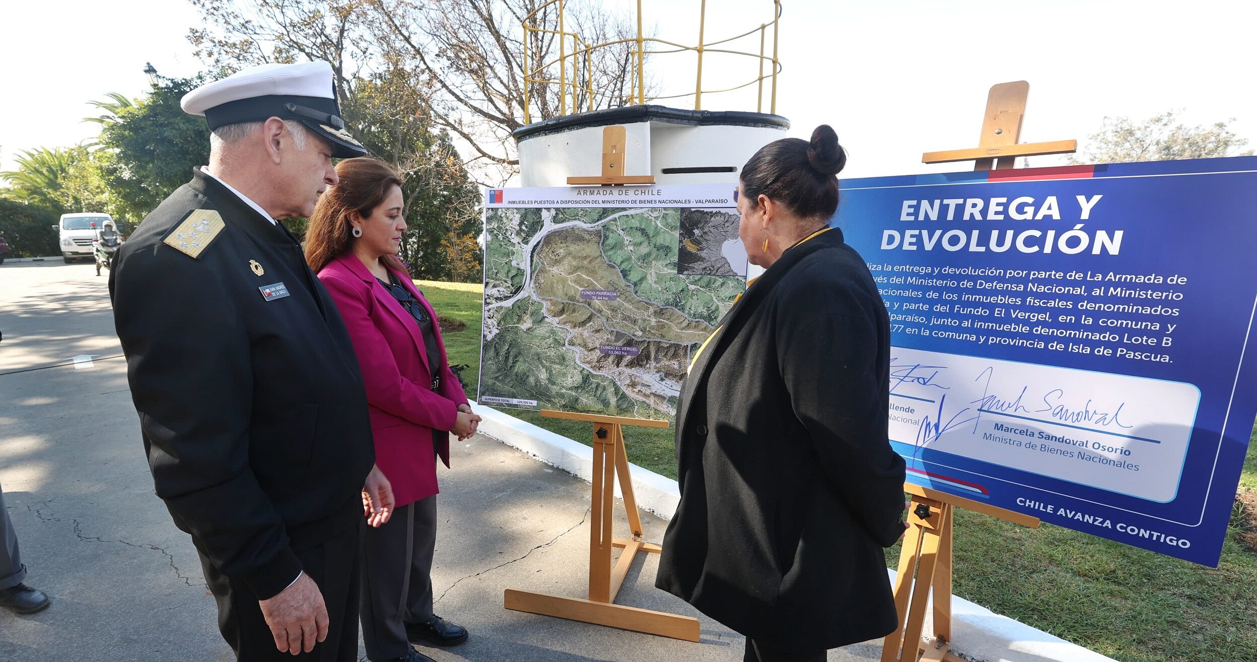 La Armada de Chile formalizó este miércoles la entrega al Ministerio de Bienes Nacionales de tres importantes terrenos en Valparaíso y Rapa Nui en el marco del Plan de Emergencia Habitacional (PEH) que tiene como objetivo ir en apoyo de las personas que más necesitan colaboración del Estado para acceder a una vivienda de calidad y alcanzar la meta establecida por el Presidente Gabriel Boric de entregar 260 mil viviendas durante el periodo de gobierno.