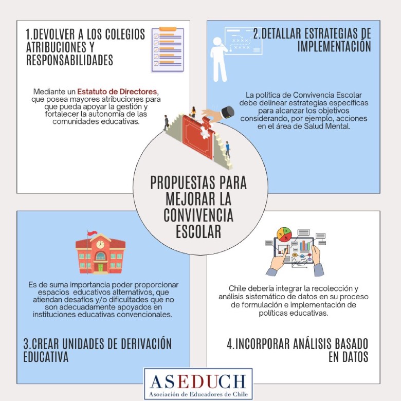 Sin embargo, para la Asociación de Educadores de Chile (ASEDUCH) “el Ministerio de Educación podría haber hecho un esfuerzo mayor, dada las altas cifras de violencia escolar conocida en los últimos años. Era una urgencia imperativa haber trabajado una PNCE en mayor profundidad, que incluyera datos empíricos para evaluar su efectividad, con mediciones cualitativas y cuantitativas que respalden sus estrategias y objetivos”, indicó James Tucker, director de Aseduch.