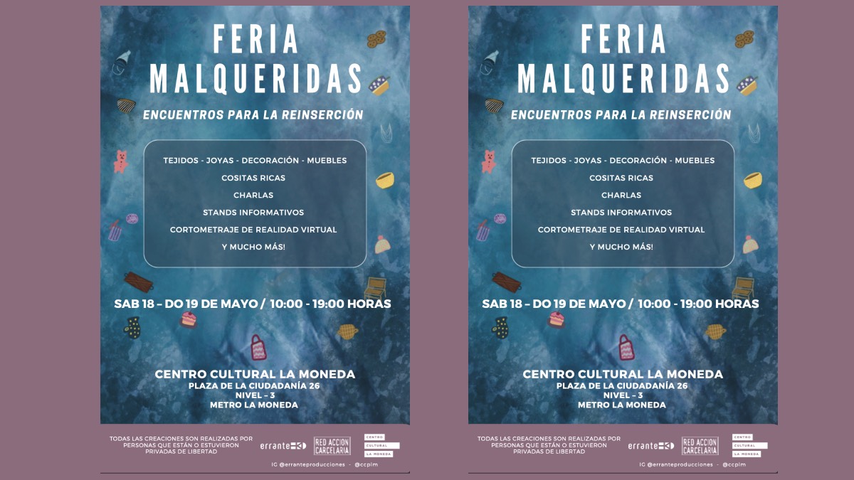 Centro Cultural La Moneda (CCLM), en colaboración con Errante Producciones, impulsa la Feria Malqueridas: Encuentros para la reinserción, que tendrá lugar el próximo 18 y 19 de mayo.