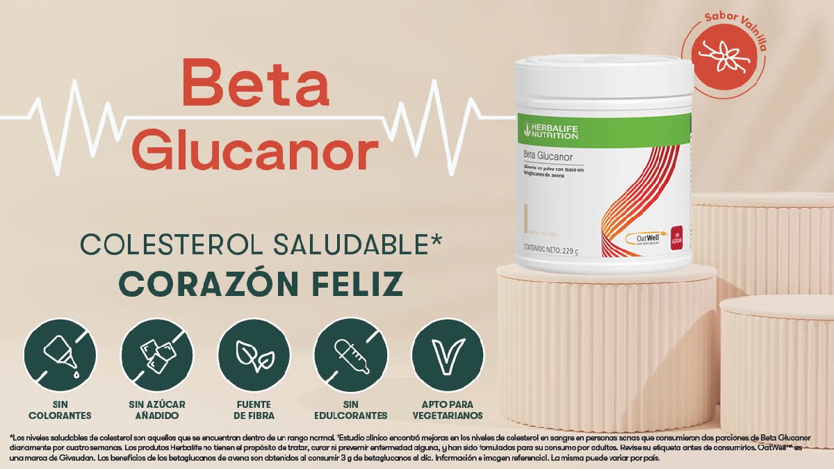 Herbalife, compañía global de salud y bienestar, lanza al mercado Beta Glucanor, un nuevo producto en polvo con delicioso sabor vainilla, desarrollado con exclusivos betaglucanos de avena OatWell™ que puede ayudar a reducir el colesterol y a mantener sus niveles normales. Está clínicamente probado para contribuir al bienestar cardiovascular en personas sanas a partir de las 4 semanas de su consumo1.