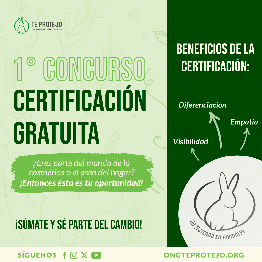 Recuerda que la única forma de asegurarnos que un producto está libre de pruebas en animales en todo el mundo es través de la certificación. Puedes revisar más información sobre el proceso en sitio web de Te Protejo, y leer las bases del concurso.