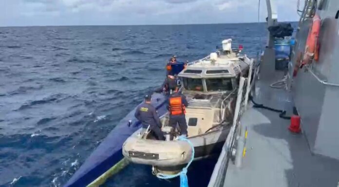 Posteriormente, fue detectado el segundo semisumergible el cual, después de ser interceptado por las unidades de la Armada de Colombia y verificar que era tripulado por dos sujetos de nacionalidad colombiana y un tercero ecuatoriano, se encontró que igualmente habían abierto las válvulas para que se hundiera con el alcaloide, por lo que el personal militar actuó rápidamente y salvaguardó la vida de los sujetos, pasó los bultos a la unidad de superficie presente en el área y dejó zozobrar el artefacto ilegal, trasladándolos hasta el muelle de la Estación de Guardacostas de Tumaco, donde las autoridades determinaron que transportaban clorhidrato de cocaína con un peso de 2.219 kilogramos.