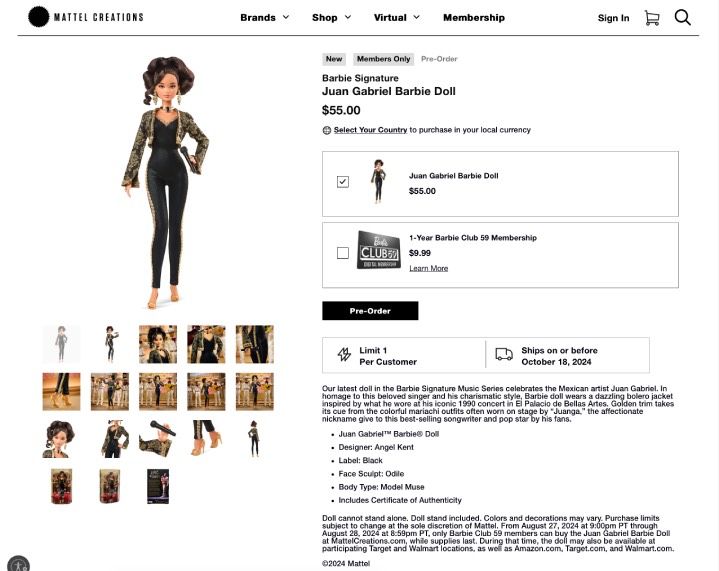 La muñeca la pueden pre-ordenar desde ya y a través de la pagina de Mattel con una restricción de 1 muñeca por persona (con envíos a todo el mundo).