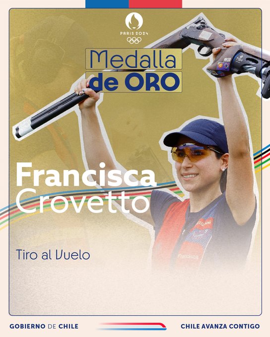 A través de un mensaje en la red social “X”, el mandatario señala que “Medalla de oro para Chile! Qué orgullo y emoción el trabajo y profesionalismo de @FranCrovetto en el tiro al vuelo”.
