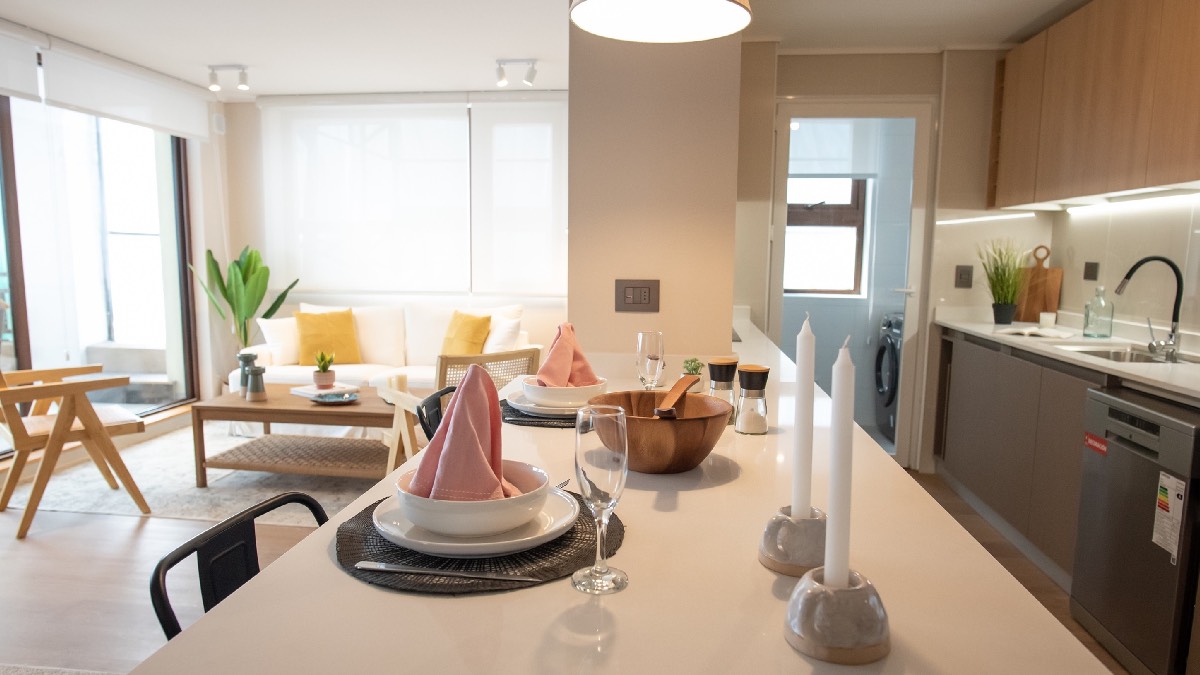 Los espacios interiores, que fue la categoría mejor evaluada los clientes de Inmobiliaria Altas Cumbres con un 83% de satisfacción, también han evolucionado en el tiempo, privilegiando los atributos más valorados por los clientes, como la buena distribución y la flexibilidad de los espacios. “Un caso muy simbólico son las cocinas integradas al living comedor, que es una tendencia cada vez mayor dentro de las viviendas, debido a que las familias quieren compartir más esos momentos, convirtiendo a la cocina en el corazón del hogar”, destaca Loeser.