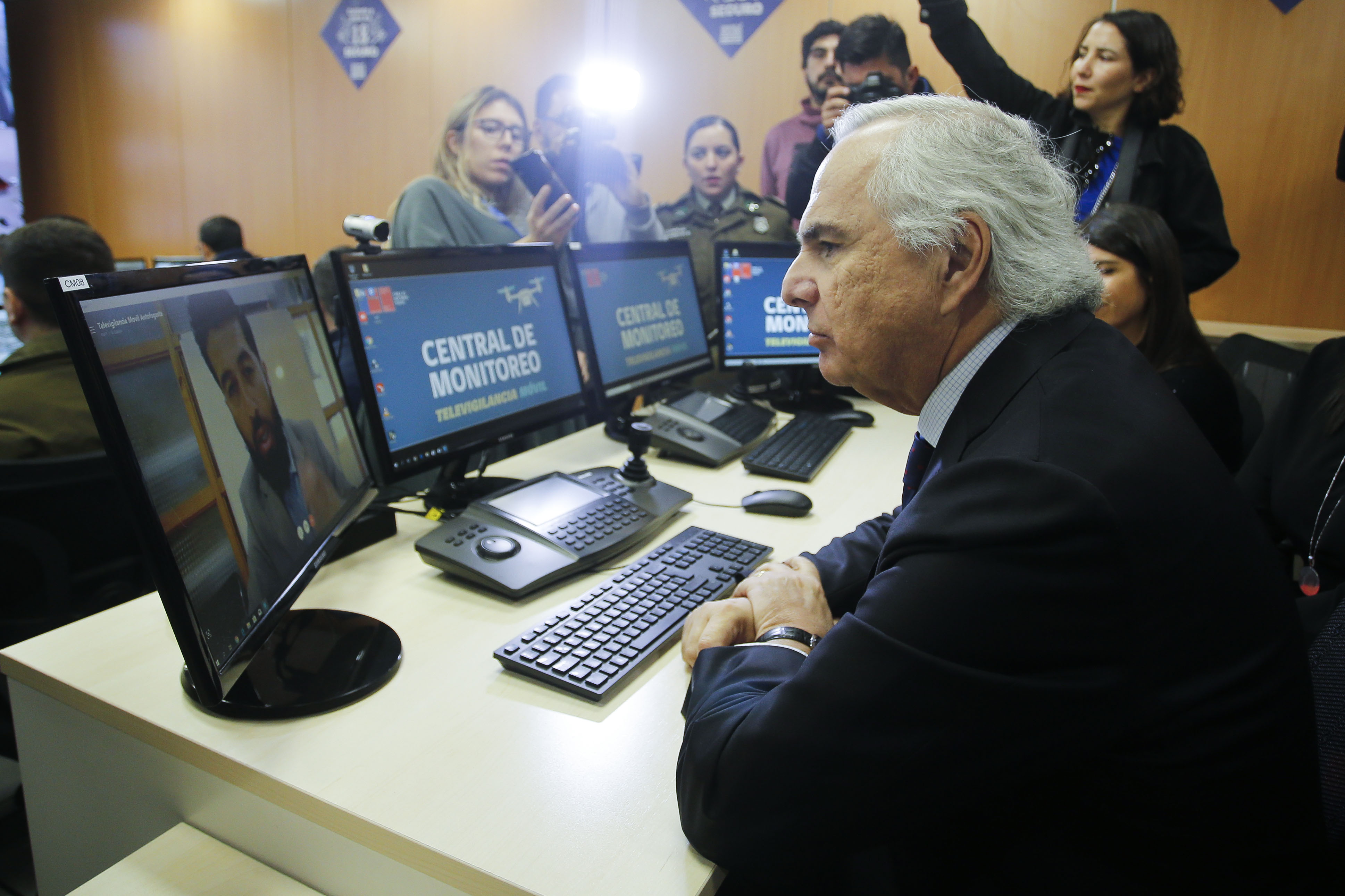 Santiago, 17 de septiembre del 2019 El Ministro del Interior, Andres Chadwick, junto a la Subsecretaria de Prevenci—n del Delito, Katherine Martorell y la Intendenta Metropolitana, Karla Rubilar, da a conocer plan operativo de drones de televigilancia durante estas Fiestas Patrias, focalizado en sectores con alta afluencia de publico, principales fondas y ramadas. Ramon Monroy/Aton Chile