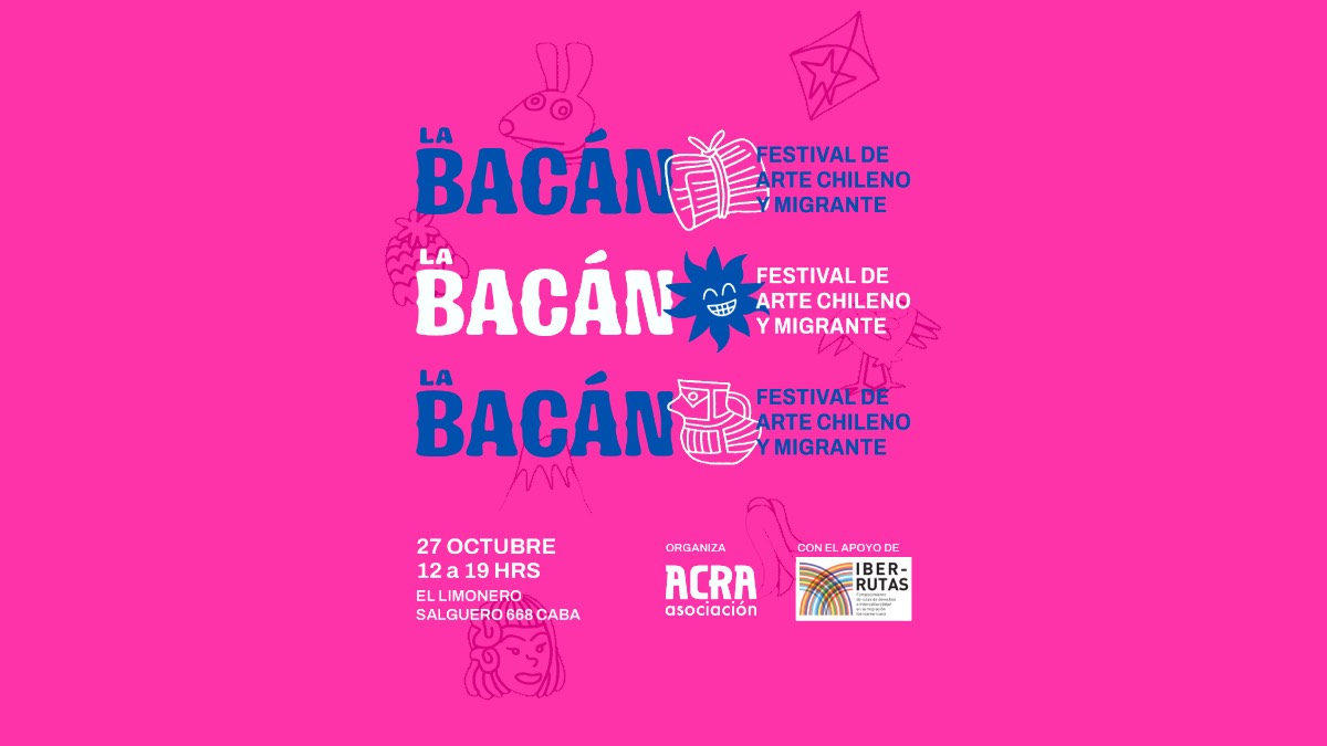 El 27 de octubre, a partir del mediodía en el Centro Cultural El Limonero será el escenario del Festival de Arte chileno y migrante. Organizado por la Asociación Civil de Artistas Chilenos Residentes en Argentina (ACRA), este evento tiene como objetivo crear un espacio de encuentro a través de diversas manifestaciones artísticas, musicales y culturales. «La Bacán» busca visibilizar el trabajo de sus miembros y de la comunidad, al mismo tiempo que establece vínculos con otras comunidades migrantes que enriquecen el panorama artístico argentino, promoviendo el intercambio cultural y la diversidad. Este festival cuenta con el apoyo y financiamiento del Fondo de Ayuda Maleta Abierta 2024 del programa IBER-RUTAS de la Secretaría General Iberoamericana (SEGIB).