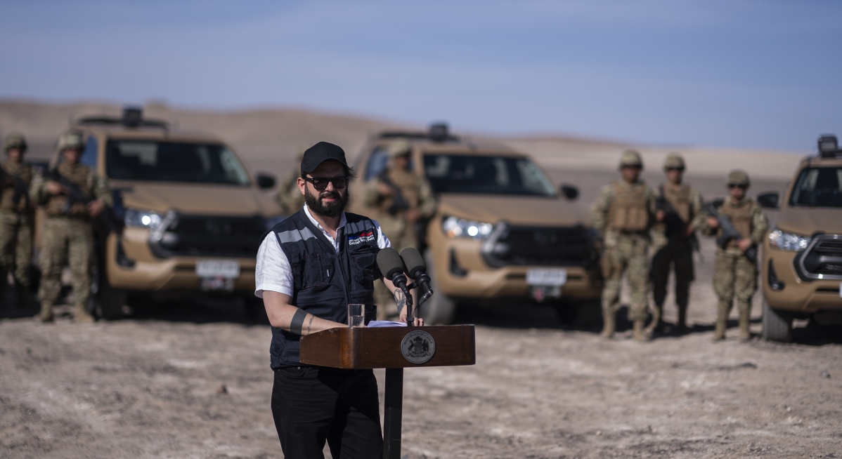 El Presidente Gabriel Boric encabezó la entrega de nuevos vehículos al Ejército destinados a reforzar el patrullaje fronterizo en la región de Antofagasta particularmente en el límite con Bolivia, ocasión en la cual expresó duras críticas a los sectores políticos que, en su opinión, han intentado sacar “provecho político” a propósito de la situación de seguridad en el país.