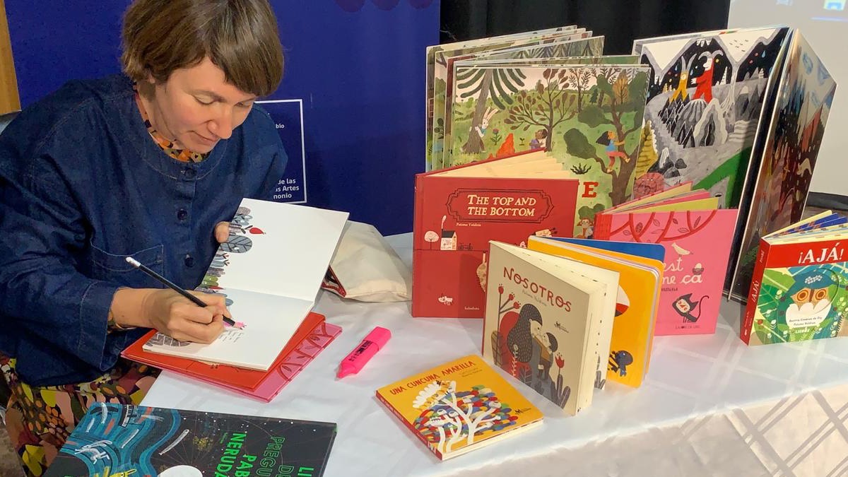 Paloma Valdivia llegó hasta la capital regional tras la invitación del Plan de la Lectura de la Seremi Biobío del Ministerio de las Culturas, las Artes y el Patrimonio (Mincap), fortaleciendo con su diálogo el fomento lector, a partir del libro editado en 2022 por la prestigiosa casa editorial estadounidense Enchanted Lion Books, alcanzando premiaciones del New York Times Best Children’s Book (EE. UU., 2022) y el Grand Prix Bienal Bratislava (2023, Eslovaquia), entre otros; siendo, además, finalista nominada al Premio Hans Christian Andersen (2024), el nobel de la literatura infantil. La publicación, también, fue producida en Chile (Ediciones Liebre, 2024).