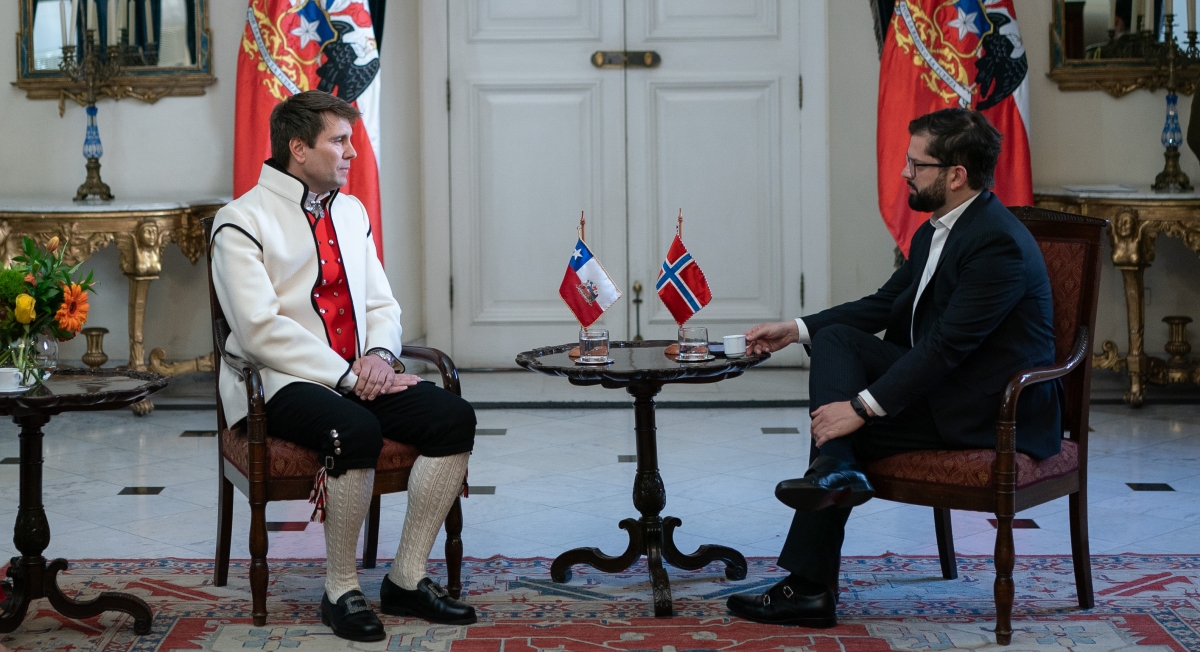 Presidente Gabriel Boric junto al embajador del Reino de Noruega, Per Anders Pollen (Foto Presidencia).