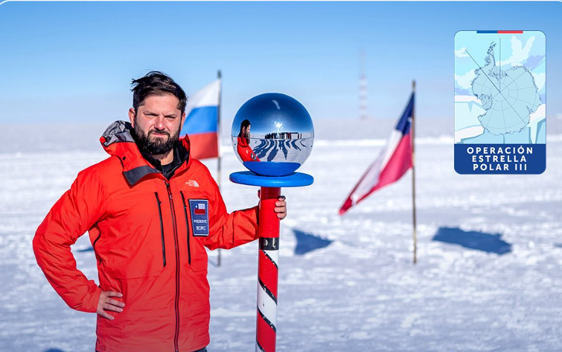 El Presidente Gabriel Boric llegó a la base Amundsen-Scott en el Polo Sur geográfico con el objetivo de fortalecer el papel de Chile en el desarrollo de la ciencia antártica, que se erige como uno de los países fundamentales “como puerta de entrada a la Antártica para el resto del mundo”.