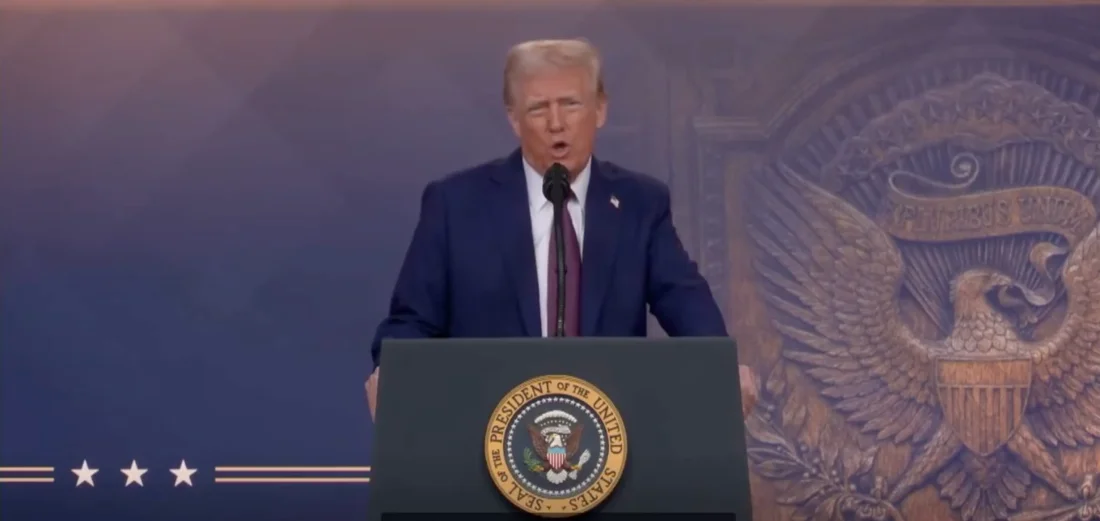 El presidente Donald Trump adoptó un tono combativo por momentos cuando habló de forma remota el jueves ante una audiencia internacional de líderes empresariales, políticos y otras élites en el evento anual del Foro Económico Mundial en Davos, Suiza.