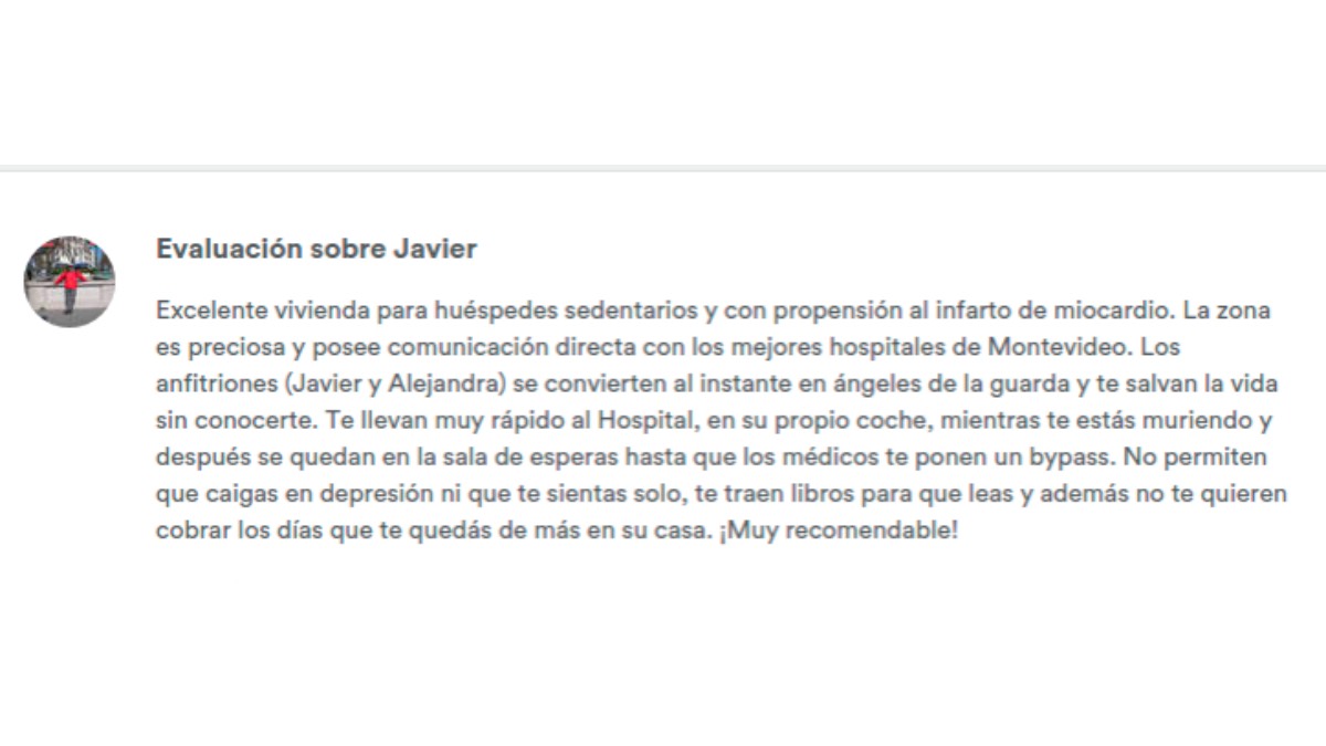 Cuando la historia de Hernán llegó a oídos del CEO de la plataforma de alquileres temporarios a través de una reseña que había dejado el escritor, el ejecutivo contactó a los anfitriones de Montevideo y decidió visitarlos hospedándose en su casa. Allí tomó conocimiento de la idea de Javier y, para sorpresa de todos, decidió invertir en el proyecto de diálisis. Hoy, aquella start-up iniciada por Javier es una plataforma con miles de usuarios en todo el mundo, confirmando aún más el “efecto mariposa” que el infarto de Casciari tuvo en las vidas de todas las personas atravesadas por el incidente.