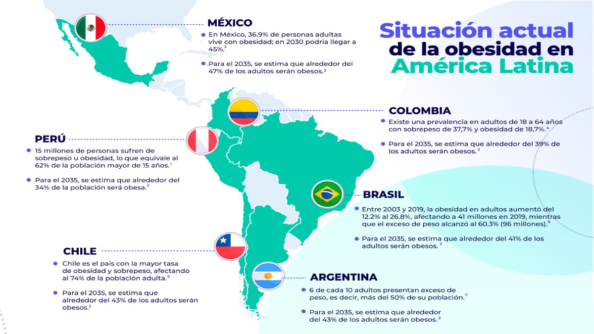 En países como Chile, Perú y Argentina, el problema es aún mayor, con más de la mitad de las personas con obesidad o sobrepeso. Este panorama subraya la urgencia de estrategias integrales que incluyan prevención, diagnóstico temprano y tratamientos personalizados.
