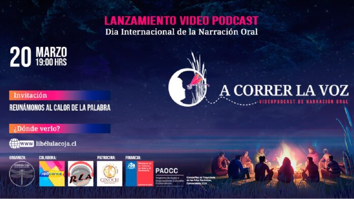 En este contexto se realizará el lanzamiento oficial del videopodcast A Correr La Voz, el aporte de la compañía Libélula Coja para la puesta en valor de las y los narradores orales de Chile, y que en esta primera temporada contará con la presencia de destacados cultores de la narración oral del sur de Chile, quienes serán entrevistados por Claudia Urbina, narradora oral y creadora de la compañía Libélula Coja.
