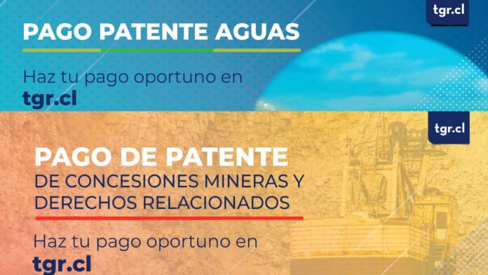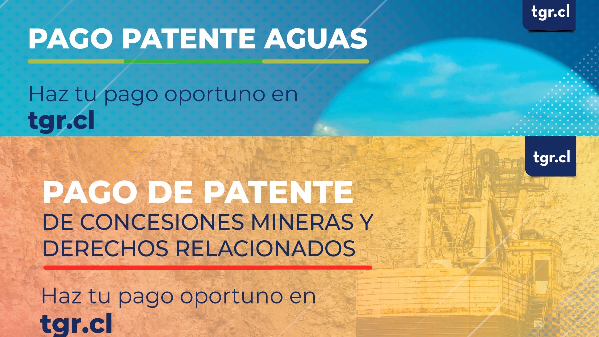 Las patentes de agua, aplicadas cuando no se hace uso de los derechos sobre este recurso, y las patentes mineras, vinculadas a concesiones para exploración y explotación de yacimientos, pueden pagarse directamente en tgr.cl.