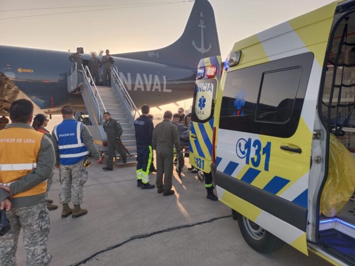 A las 18:00 horas se embarcó el equipo médico del SAMU —compuesto por un médico y tres enfermeros civiles— junto a equipamiento especializado.