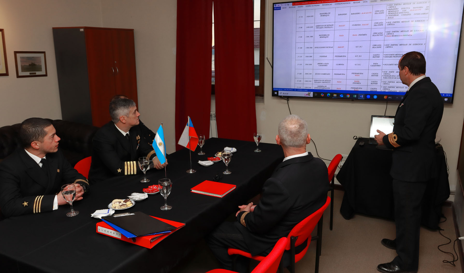 El encuentro de trabajo se desarrolló en la sede del Comando del Área Naval Austral trasandino (ANAU) en Ushuaia, en el que fue encabezado por el Jefe del Distrito Naval Beagle (DISNABE) de la Armada de Chile, Capitán de Navío Manuel Iturria Juillerat, y el Jefe del Estado Mayor del ANAU, Capitán de Navío Carlos Alberto Soto.