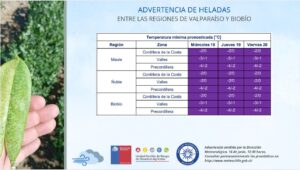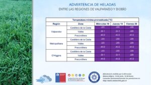 La Dirección Meteorológica (DMC) emitió una advertencia por heladas que afectarán entre las regiones de Valparaíso al Biobío que podrían llegar a los -4° en algunas zonas.