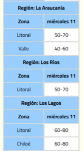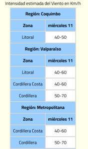 La Dirección Meteorológica (DMC) emitió este sábado un aviso meteorológico para 10 regiones del país por viento normal a moderado.