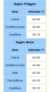 Maule (Litoral, Cordillera Costa, Valle, Precordillera, Cordillera)