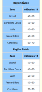 Biobío (Litoral, Cordillera Costa, Valle, Precordillera, Cordillera)