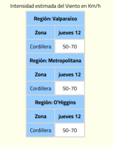 La Dirección Meteorológica (DMC) emitió un nuevo aviso por vientos normales a moderados que afectarán a las regiones de Valparaíso, Metropolitana y O’Higgins.