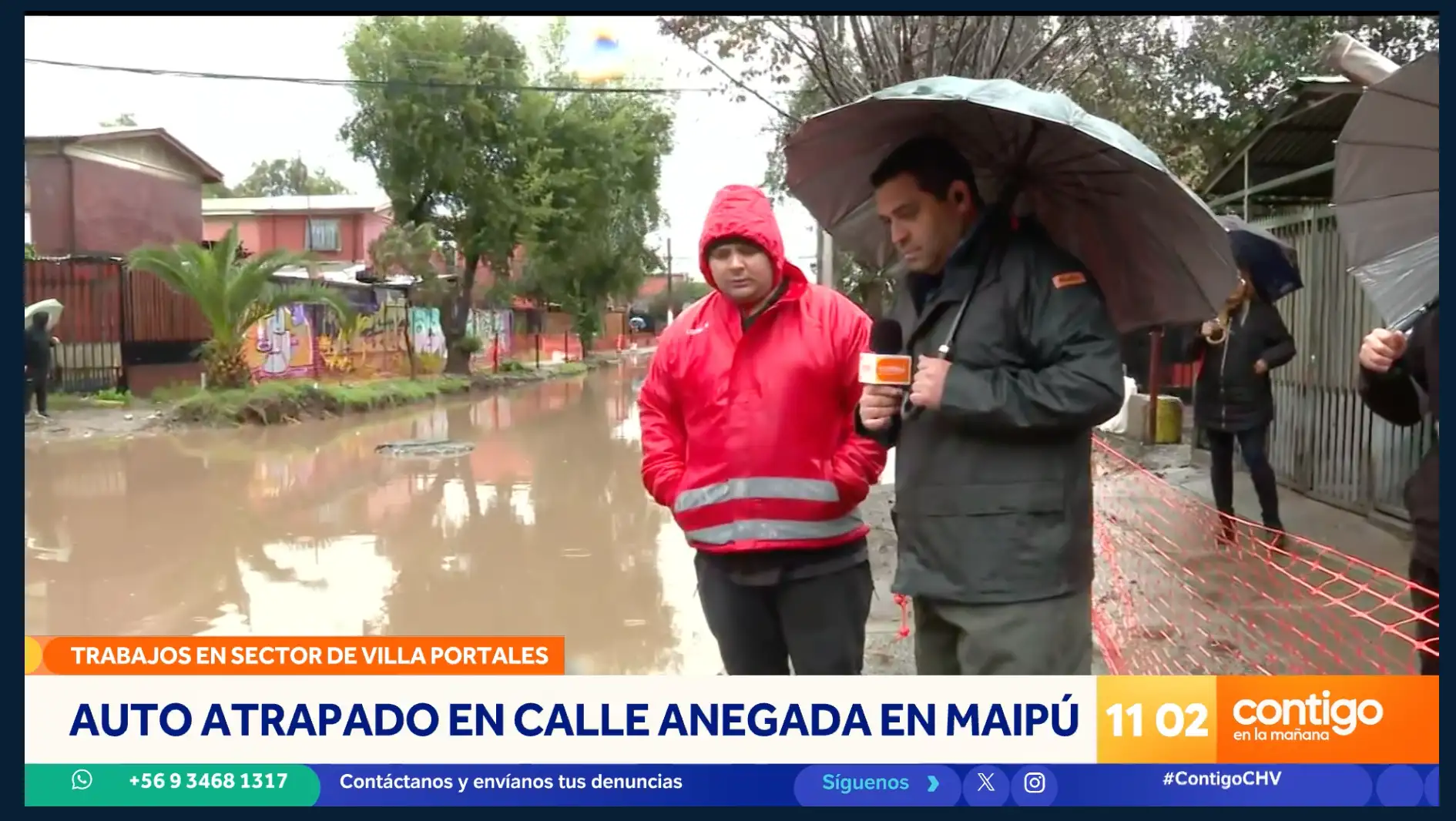 Por cierto los matinales están haciendo tremendas notas por «graves» situaciones, como CHV que durante varios minutos coloca como nota principal un auto atrapado por la lluvia en una calle cerrada por trabajos